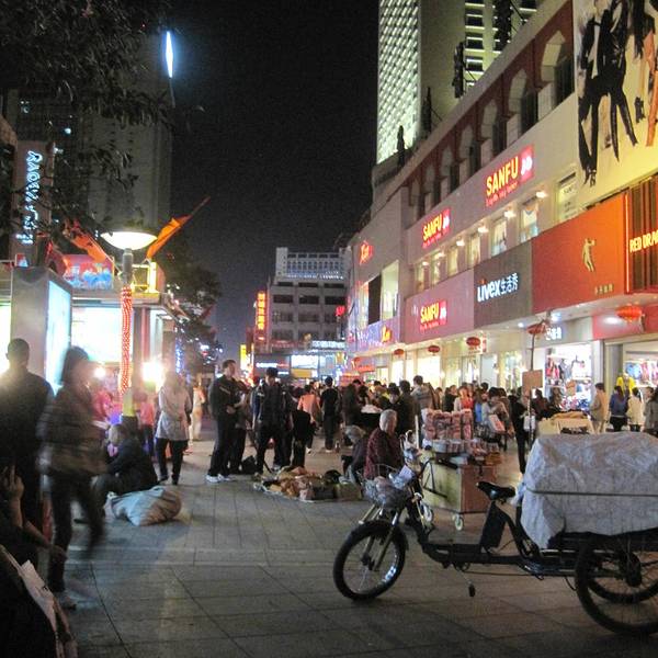 位于市中心,离火车站也很近,东西多,但是也特别乱。注意财产安全。