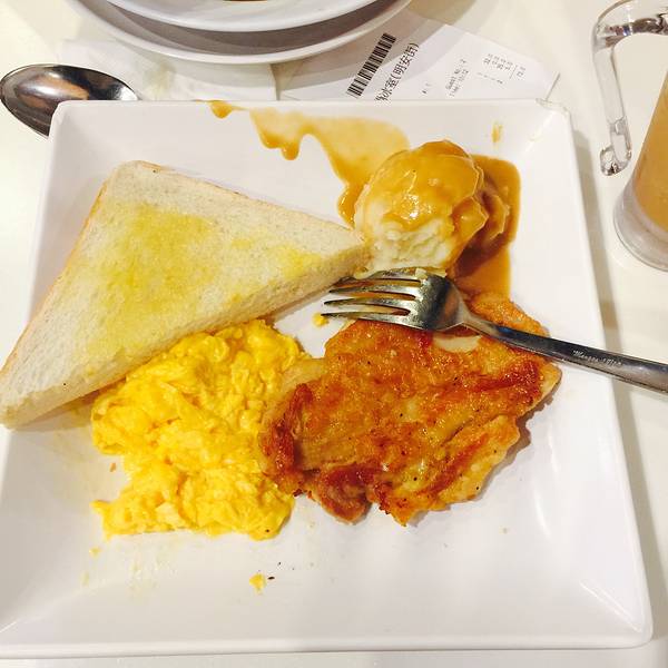 - 吐司很好吃的呀,鸡扒很好吃的呀,炒蛋很好吃的呀,沙爹牛肉面很好吃的呀,港式冻奶茶很好吃的呀
