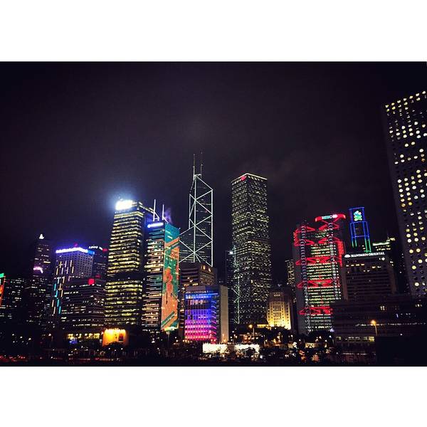 长洲回来的晚上近距离的看到这里高楼林立 互相比高的汇丰 中银 渣打 抬头望不到顶。