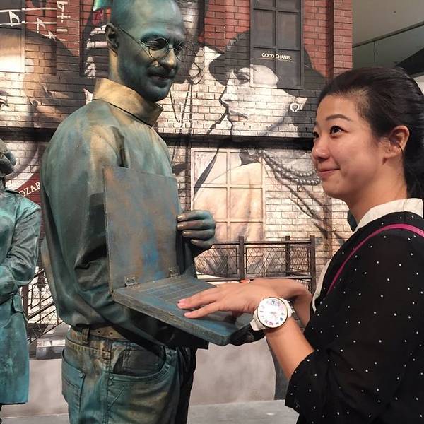 偶遇商场里的展览。都是真人扮演的铜像大人物。Hello,Walt Disney.可口可乐之父,阿萨·坎德勒。Steve Jobs.浪漫的法国建筑大师Gustave Eiffel.镜子里自己,不太一样。