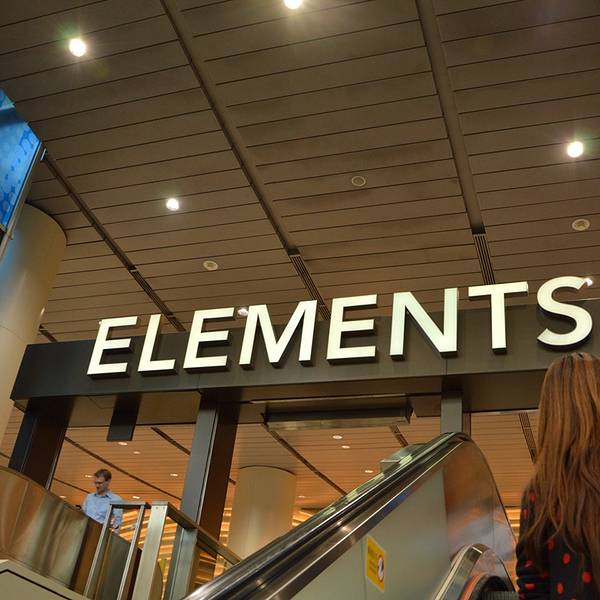 ELEMENTS圆方与高速铁路香港西九龙站无缝衔接,集国际名店购物、环球食府、休闲娱乐及文化体验于一身。商场占地九万余平方米,设计参照欧洲大型商场的设计模式, 每区更有不同元素的艺术品做装饰,是在香港把艺术设计融入购物中心的先驱之一。经ELEMENTS圆方商场金区2楼「艺术广场天桥」,更可直达毗邻的西九文化区, 游览M+视觉文化博物馆、香港故宫文化博物馆等景点,是高端时尚一族与高铁出游的消闲首选! 交通:港铁九龙站上盖(东涌线/机场快线)或香港西九龙高铁站M出口