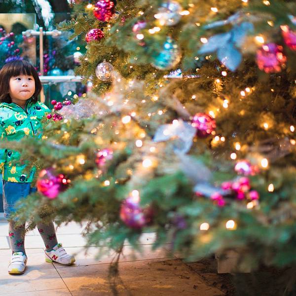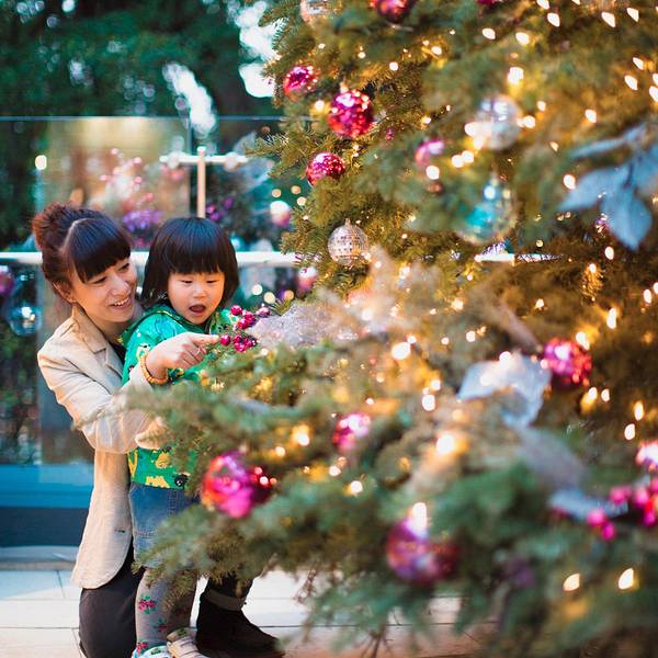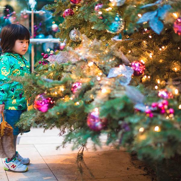 赤柱广场里巨大的圣诞树随着夜幕的降临被点亮,彩灯一闪一闪的十分精致可爱。