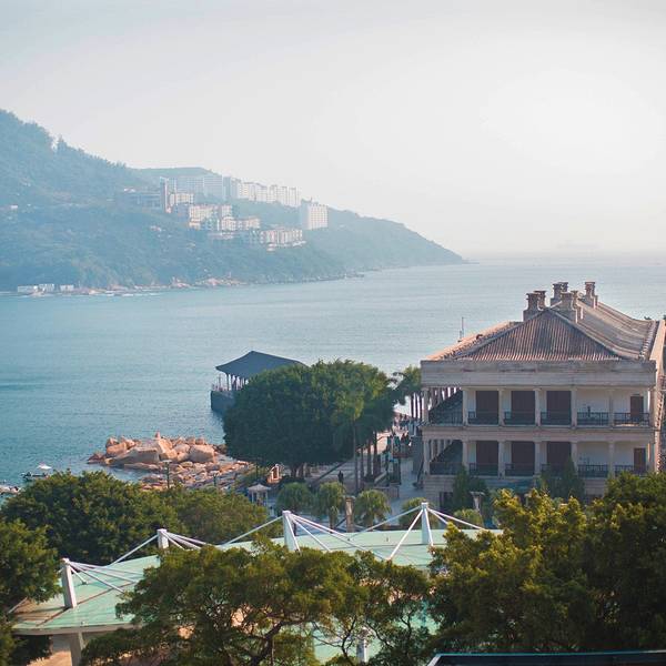 下午的赤柱广场,情侣在树荫下惬意的依偎。下午的赤柱,放眼望去海面格外平静