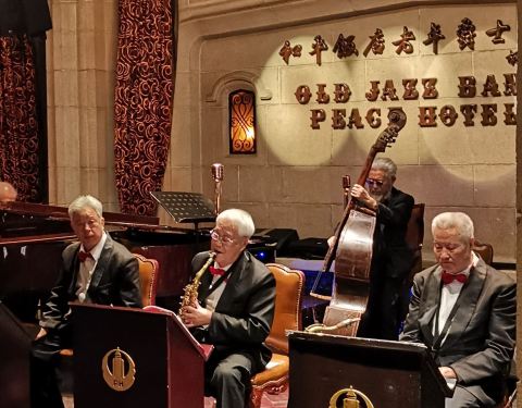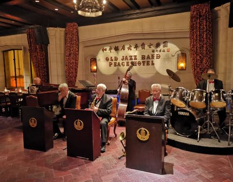 上海和平饭店的爵士酒吧非常有名,这里有一群头发花白但精神饱满的老爷爷们组成一支爵士乐队为顾客演奏激情…