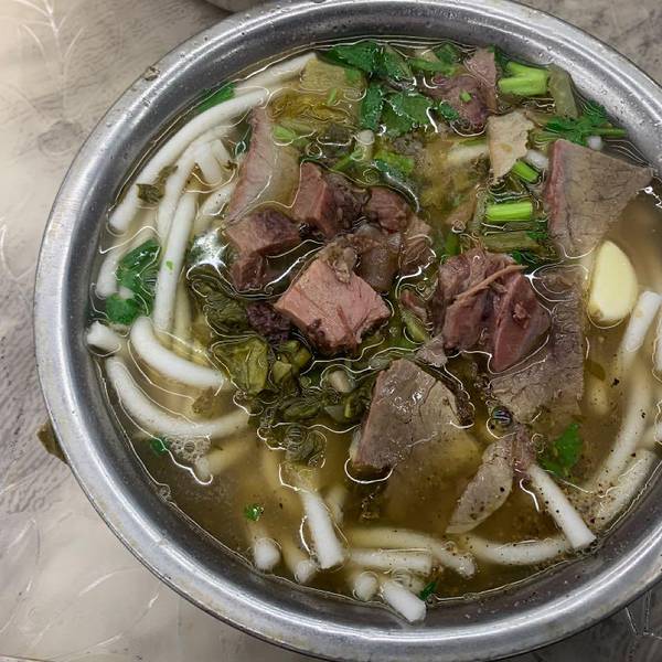 贵阳大名鼎鼎的社会牛肉粉,以前是在小巷子里,晚上10点过开始摆摊,后来挪到旁边的小块平地上,最后才到了如今的店面,环境比以前好太多了,虽然地面上不算干净,但是至少能亮亮堂堂地吃粉了。(以前的环境是有多糟糕……)而且下午6点过就有得吃了。虽然现在门面在停车场内,但是同样不好停车,不要自驾前往。 他家的粉好吃最主要是在于汤浓,颜色不讨喜,属于黄青色,但是味道秒杀贵阳绝大多数的牛肉粉店。加上酸菜,满满的老贵阳味道。辣椒面也是精挑细选,糊辣正合适。单碗12元,加肉和加杂的价格比其他家贵1-2元。 但是他家的粉不太好,孔状,轻轻一夹就断,需要改进。 社会牛肉粉属于深夜深巷美食,值得打卡,强烈推荐大家前往!