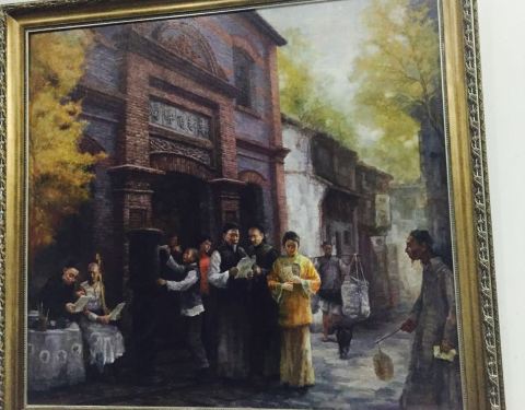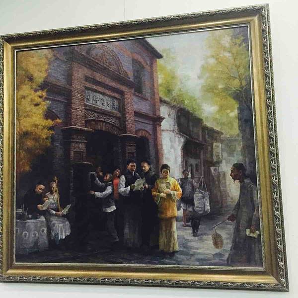 在出口处,馆内展示了许多油画,再现了古镇风情风貌
