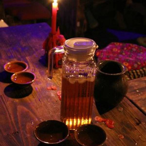 文治巷的“38号”是一处别致的所在,这里充满文艺复兴气息,油画家出身的歌手阿泰和古琴师蛛蛛给心慌意乱的人们带来安宁。认识的,不认识的人在火盆四周席地而坐,就是38的主题,黯然销魂、醉生梦死。这是38的主打酒,酒是自酿的,度数不低,但是有桂花的清香,口感很好,但后劲挺大,回到客栈吃了一个本来要带回家做手信的嘉华玫瑰蛋黄酥,才压住了酒劲。地址:古城区古城五一街文治巷41-2号
