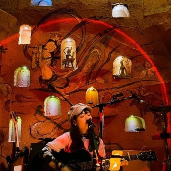 第一次是在大理一家挺有名的酒吧,说实话,普普通通,总感觉缺少点什么。进去找了个角落,点了壶酒,味道也不错,淡淡的梅子香。歌曲都是原创的,老板很有才华,据说墙壁上的画都是他的手绘,二楼还有个人画展。