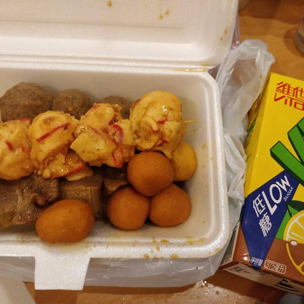 有两个档口,一个主营卤水,一个就是炸大肠啦。 卤水:咖喱鱼旦/龙虾丸/牛肉丸/牛舌,鱼旦虾丸就不多描述了,牛舌超级惊喜,切片很厚,口感劲道又柔软。 炸大肠:爆赞!别家的都比不上!原有臭臭的味道已经被卤完再炸的工序完全处理掉了,外焦里嫩,配上料汁,噢让人怀念。炸大肠