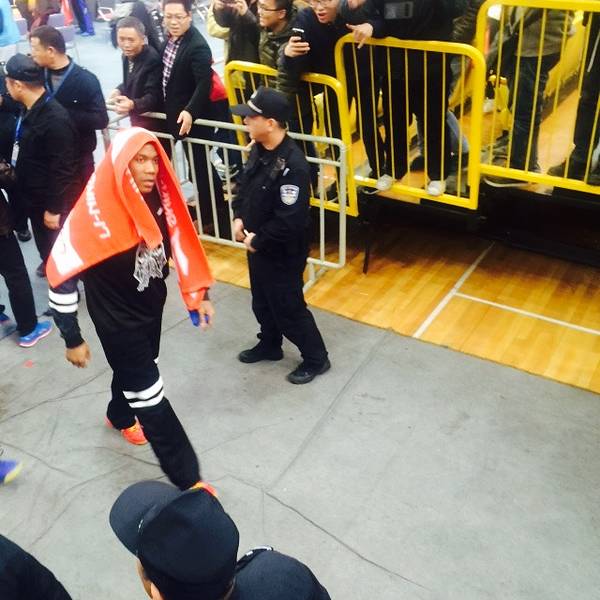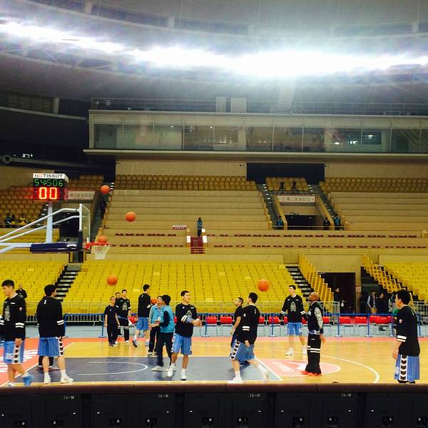 门票最后一行的温馨提示是亮点,可惜。早早冲到场内,近距离观看首钢队赛前训练。他乡遇故知的感觉旅途中竟然有惊喜,恰逢周二佛山有场CBA还是对北京队,毫不犹疑订了第一排的座位,当一回最远首钢远征军!