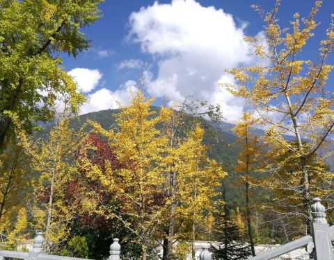 金秋去景色另有一番别致,平时香火都很旺金秋去景色另有一番别致,平时香火都很旺。我们进了景区大门坐车上去的,其实还可以骑马,沿途风景也很饱眼,下山时步行回途的。