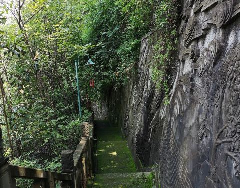 如果是乘坐游览车,在青龙寺就有一个站台,下车就能听到寺院放的禅音,再往旁边的山上步行几分钟就到了如果是乘坐游览车,在青龙寺就有一个站台,下车就能听到寺院放的禅音,再往旁边的山上步行几分钟就到了。在青龙寺的游客不太多,很多人都到下一个站,去金鳞沙滩游玩了。