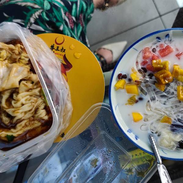 一家人肠粉 ✨肠粉的皮很薄,吃着很有嚼劲,加上香菜的味道,相当的正宗。 海石花 ✨看到很多家都在卖海石花,也尝了尝。海石花还是夏季解暑饮品,具有降火、解暑、祛热的功效 采摘回来的石花草,需要经过反复的清洗,去掉海盐,再进行熬煮后过滤,最终成了透明胶质的海石花美食。豆花炒冰 ✨店里打着牌子是首家豆花炒冰,味道不错,和海石花的配料基本一致。