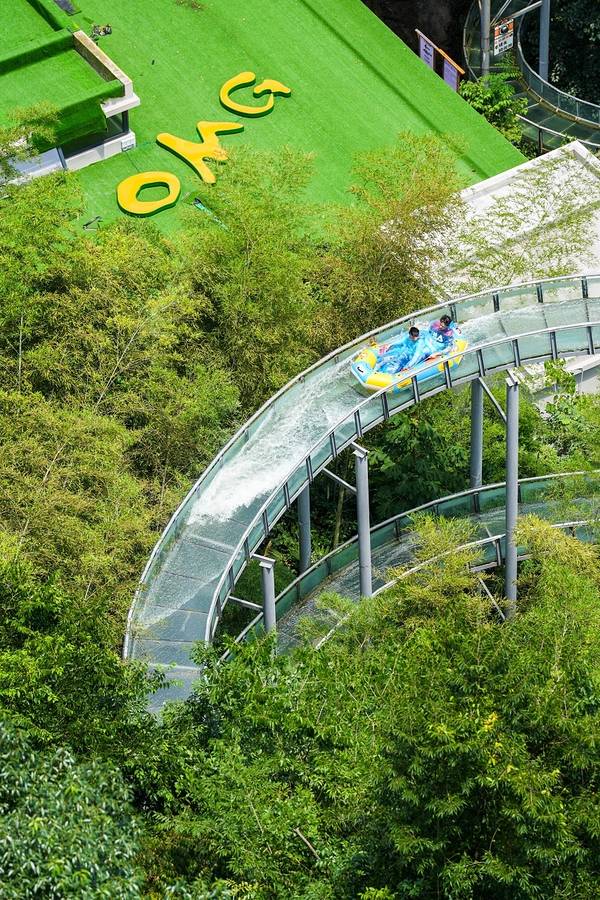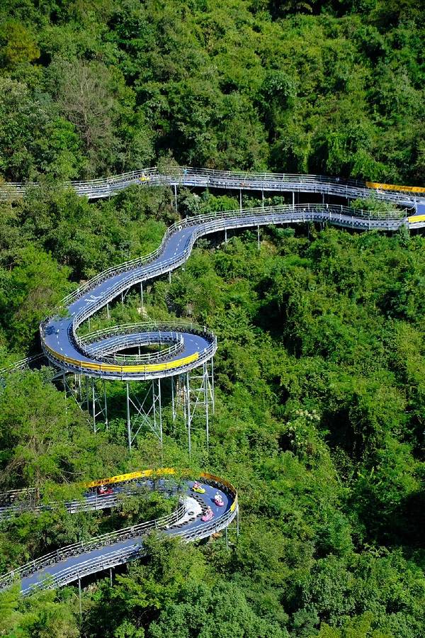 “OMG心跳乐园”带上大炮去旅行第十九期 最近终于去打卡了Omg心跳乐园 只有自己亲身去才能感受到 真的能做到上天入地 玩的就是心跳 📍:杭州桐庐Omg心跳乐园 🚗:杭州自驾两小时、也可高铁半小时到达桐庐站,后打车前往 🚶推荐路线 通天河游船➡️地心科考队➡️凌云天梯➡️长空秋千➡️九天云廊➡️天路飞车➡️天马行空➡️凌空漂流 🏖️景点概括 1️⃣通天河游船 主要就是乘坐小船,进入上亿年形成的天然溶洞,里面的灯光,奇形怪状的钟乳石,相映相成,船夫也会一直讲解溶洞奇观,洞内像开了空调一样,夏日避暑的好去处 2️⃣凌云天梯 400米高空的玻璃栈道,往下看还是很刺激的,真的感受到心跳的速度加快,适合小情侣,手牵手走过去 3️⃣长空秋千 悬崖高空上荡秋千,被抛到空中,失重感太强了,胆小的人最好不要尝试 4️⃣九天云廊 比凌云天梯更高的玻璃悬空栈道,可以俯瞰飞车和漂流赛道,可以看到远处的山脉,上面美景很不错 5️⃣天路飞车 全程2.2Km的超长赛道,滑板车操作简单,很容易上手,乐园的主力项目之一,真的特别好玩,想再玩上三五遍 6️⃣天马行空 高空上行的旋转木马,很有意思,可以减去爬山的幸苦,坐着马车上到山顶玩漂流和飞车 7️⃣凌空漂流 乘坐皮艇从玻璃栈道上顺流而下,好玩又刺激,免费提供一次性雨衣,这一点真的很赞 🔹另外还有一些亲子项目,捞鱼、挖沙,筋斗云等等,亲子出游的好去处 📷拍照机位小Tips 🔸游船第一段下船之后,有一块大空地钟乳石,可以合影拍照 🔸九天云廊上面,可以俯瞰整个飞车和漂流赛道,可以拍摄大景别的图片 🔸天马行空,坐在马上面上行过程中,沿途有很多好看的风景
