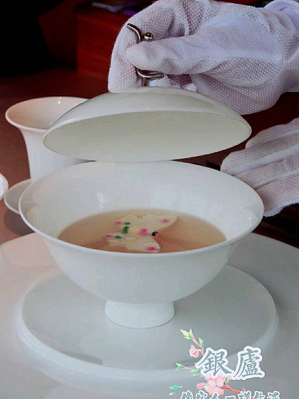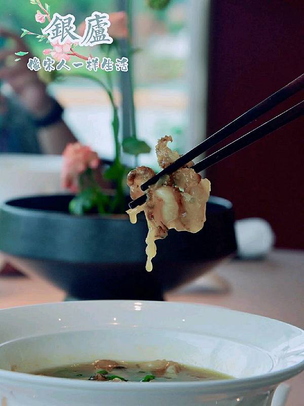 静谧风雅,宋人的生活就是如此惬意 麓湖旁,清波荡漾,泛舟湖上,一杯清茶,淡雅轻食,繁忙的工作生活中感受一分片刻的悠闲宁静。今天就带大家来这么一家麓湖旁的私房菜,感受古宋人的一般生活。 ——————💌餐厅信息💌—————— 餐厅名称:银庐(麓湖店) 📮餐厅地址:双流区天府大道南一段麓湖水城景区内 🚌交通路线:地铁1号线麓湖站A口步行1200米 ⏰营业时间:周一至周日11:00-21:00 ——————🍀餐厅环境🍀—————— 沿湖而造,中式风格,一走进来就会有种很放松的心情和感觉。中间是一片绿植区域,青山绿水,鱼儿在水中嬉戏,仙气环绕,仿佛置身于大自然之中。 湖边的下午茶区域也很棒,清风吹拂,涟波漪漪,生活真的如此惬意。 ——————♥️餐品味道♥️—————— 青花椒脆皮乳鸽 :摆盘精致,乳鸽烤制外皮酥脆,口感酥香,青花椒提味,一丝丝麻麻的味道也丰富了菜品的口感层次。 芙蓉鸡淖 :古法川菜,继承了川菜的精髓,用鸡肉,蛋清,加入猪油,调制成浆状,色白如雪,吃起来口感顺滑,清爽,咸香口感。 肉丁干烧羊肚菌 :选用优质的羊肚菌,肉丁,菌菇切成丁状,采用干烧的烹饪手法,味道入味,咸香可口,口感清爽。 蝴蝶竹荪汤 :用鸡,鸭,竹荪熬制几小时的高汤汤底,清淡香浓,鸡脯肉做成了蝴蝶的形状,蔬菜汁点缀,好似蝴蝶翩翩起舞。 月夕花朝:甜品是中式茶点搭配一杯浓香的清茶,甜品做成了花朵和葫芦的形状,很精致,清茶一杯可以度过一个美好的下午。 ——————☎️推荐理由☎️—————— ✔️环境舒适安逸,微风轻抚,倚坐湖边,感受大自然与美食美妙碰撞 ✔️除了享受美味的食物,还可以体验宋服,古琴演奏,品茗,花艺,感受宋人一样的生活 ——————🛎餐厅服务🛎—————— 服务员统一着古宋服饰,清新淡雅,服务周到体贴,说话又很温柔,有什么要求都能及时地回应,上来每道菜都会有详细的介绍,让你充分了解每道菜品。