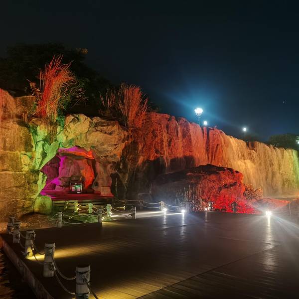 来自游记西樵山白云洞观心之旅,夜赏听音湖瀑布,228米的美丽风景线