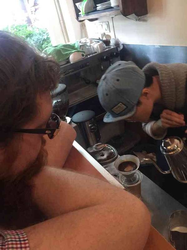 随便吃吃,朋友名字叫这个就去了。这家咖啡不错,至少是个小避风港一扇门分割出了两个世界,门外是喧嚣,店内是悠闲惬意。去的那天人很多,三层都坐满了,但是并不嘈杂,耳畔传来的除了背景音乐就是杯盘轻轻的碰撞声。 推荐店里的三明治,很美味。点了两杯咖啡,我的拿铁味道不错。主要是咖啡豆很好!很香!朋友点的一杯有威士忌的咖啡,名字忘记了,还特地用滤纸一点点的冲泡出来了!口感很棒!很不错!