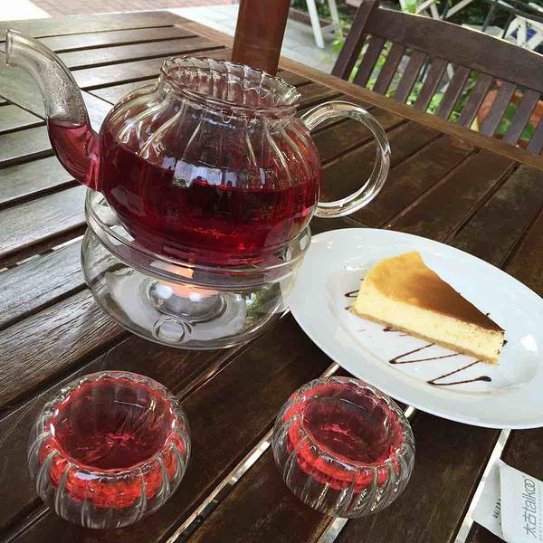 环境非常漂亮,绿植的分布、设计都很有感觉。在踏入院子的一瞬间就喜欢上了。提拉米苏甜度适中,略偏低(本人口感而已,特爱甜品),口感不粘腻。焦糖玛奇朵咖啡,入口时焦糖的味道很惊艳,没想到的感觉。