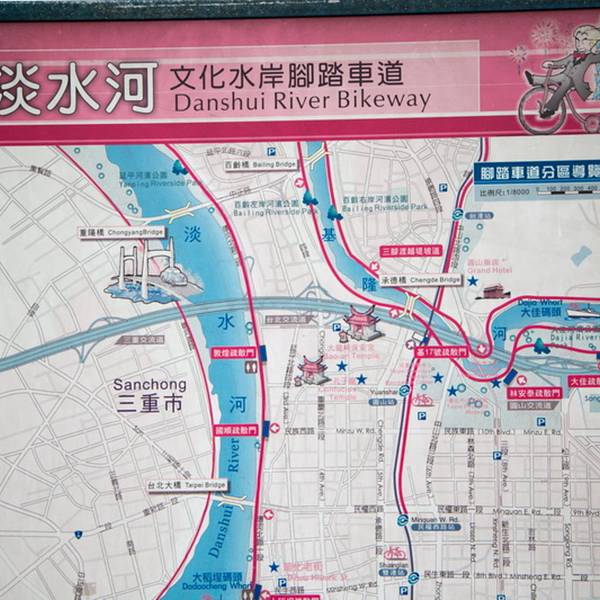 沿淡水河骑行,景色优美,临近不少知名景点,大台北地区经典骑行道之一。