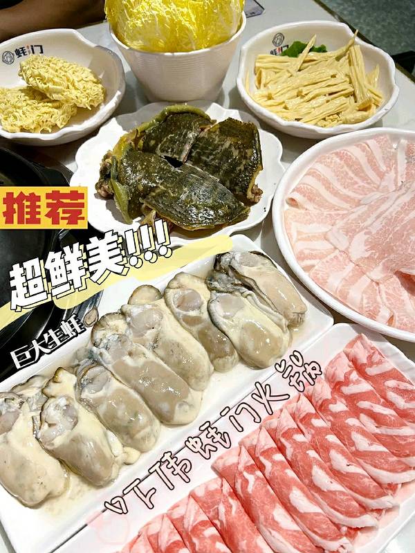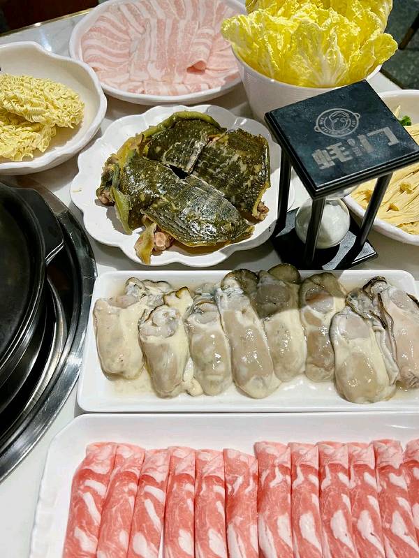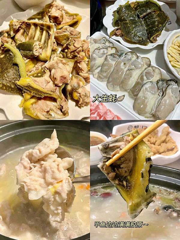 N刷的生蚝甲鱼煲在闽侯开新店啦!! 汤真的太鲜了!大补!连喝了三碗汤,太痛快了~ 甲鱼生蚝煲汤底已经是熬好的鸡汤!还加入了红枣枸杞石斛等等养生配料一起熬汤,一个沙漏⏳的时间就可以开吃啦,先来一碗汤真的特别鲜甜!甲鱼肉煮的很烂一下就脱骨,甲鱼边也太Q弹了胶原满满! 生蚝真的绝绝子!个头特别饱满,似乎是来自山东的蚝特别新鲜没有异味,一盘有8个!白白胖胖真是大补啊!! 再来一涮一点小肥羊五花肉片腐竹娃娃菜等等荤素搭配实在太满足了!!这样的滋补养生火锅可以N刷!强烈安利!!