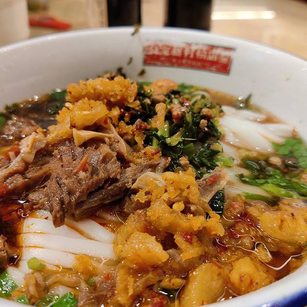 打破商业街吃食在及格线的印象:汤底浓郁,肉香弥漫的浇头搭配酸菜剁椒,嗦一口软滑不失弹性的米粉口感爆炸