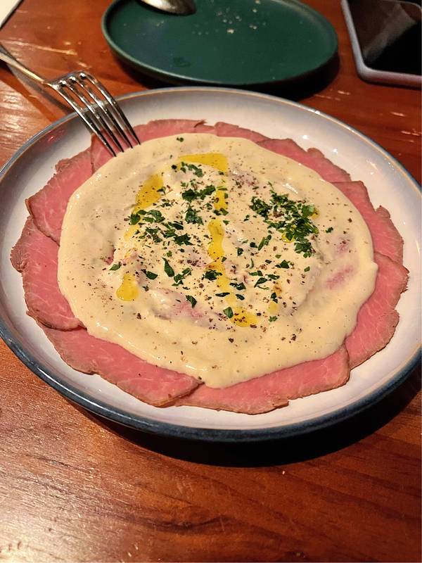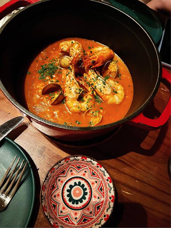 多汁西班牙海鲜饭,还是那一锅美味。新品牛肉薄片配吞拿鱼酱,酱料的鲜和牛肉的香味好配哦! 小菜点了鹅肝汤,略咸了一丢丢。 二个胃口不算太大的人,这些菜量够了,新品总是会给人小惊喜呢。 服务态度一直很好,环境温馨,会继续光顾哒! 📇地址:上海市龙茗路1025号 🚌公交:地铁12号线虹莘路站2号口步行630米 🕐营业时间:11:30-23:00 💰人均:198元/人