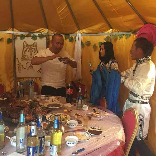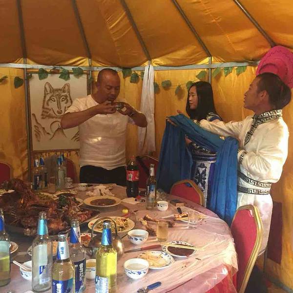 哥儿几个就爱喝大酒,尤其烤全羊确实不错。好吃😋献哈达那个女孩儿挺漂亮呵呵