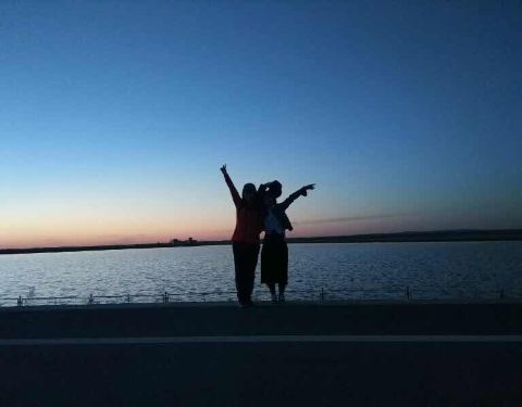 不错的地方,天高云淡,阳光明媚,我们几个摆拍一下下。羊腿也好吃。