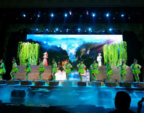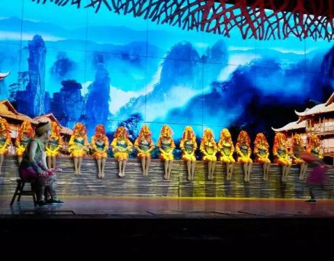 歌舞表演很具有民族特色,演员民族服饰华丽漂亮,歌舞表演很具有观赏性,值得一去观赏烟雨张家界歌舞表演地点位于黄龙音乐厅,音乐厅内可容纳1000名观众。歌舞表演很具有民族特色,演员民族服饰华丽漂亮,歌舞表演很具有观赏性,值得一去观赏。