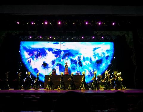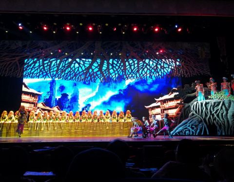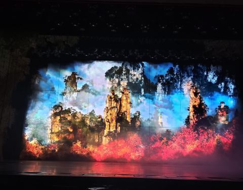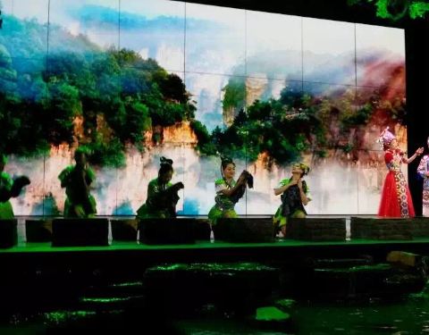 烟雨张家界歌舞表演地点位于黄龙音乐厅,音乐厅内可容纳1000名观众。歌舞表演很具有民族特色,演员民族服饰华丽漂亮,歌舞表演很具有观赏性,值得一去观赏。