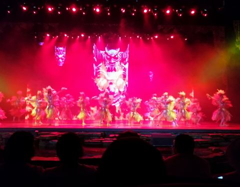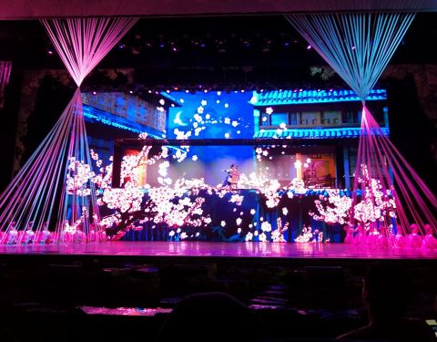 很好的表演,舞台美轮美奂,演员表演单位,有几轮互动,有笑点有惊奇,值得一看!不过不知道为什么现在大大小小的表演前都要弄个书法家现场卖字~这里也是一样~!