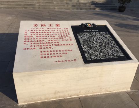 凭身份证领票可以免费参观,墓前的神道两侧有石像生。进入陵区先是一个展览馆,介绍了苏禄王到明朝朝贡以及去世的经历,对了解墓葬的历史很有帮助。墓本身不大,一座石碑后是一个封土堆。在主墓几十米远的地方,...