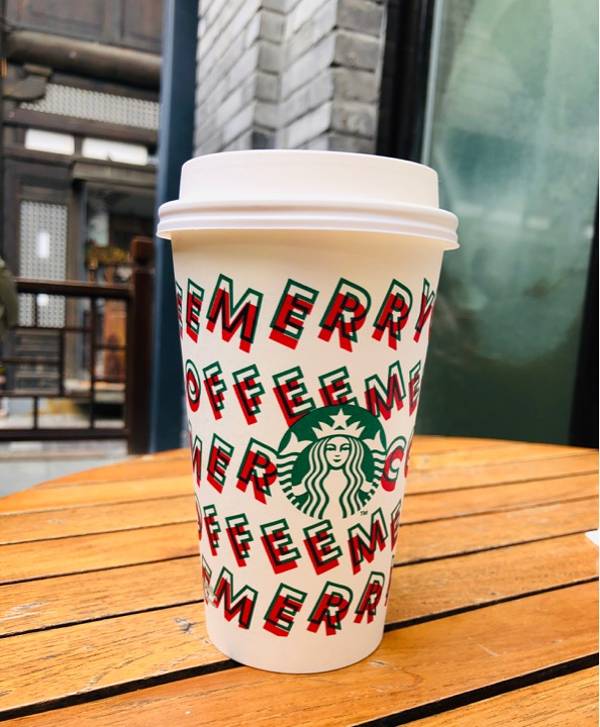 除了圣诞杯子,连饮料纸杯都已经换上了圣诞的图形,还是非常有节日气氛的啊