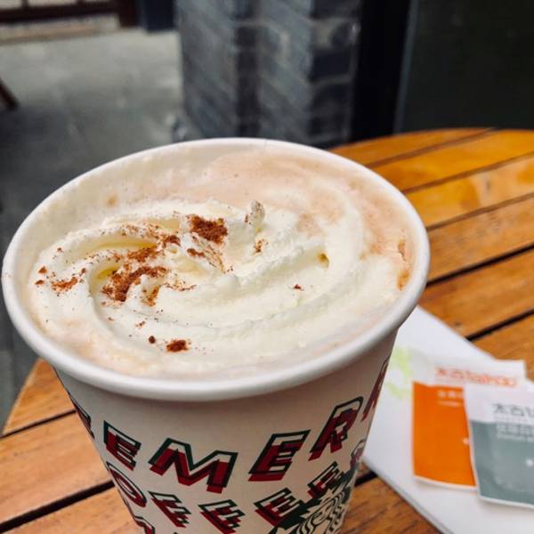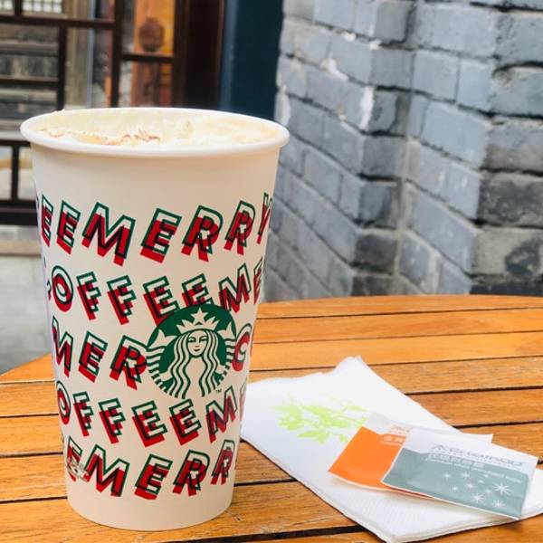 在寒冷的冬天,有我们陪你 快要圣诞节了 所以圣诞款型号的杯子又上市了 除了圣诞杯子,连饮料纸杯都已经换上了圣诞的图形,还是非常有节日气氛的啊 其实会进去更多的还是门口的行为艺术吸引了我 然后就莫明的走进了这个“深宅大院” 大概因为在宽窄巷子里面,他的外观造型还是很特别的 宽大的牌匾,很有朝代感,走进,居然是江南风的小庭院 走进,其实这是一栋小洋楼,上下两层楼,点餐就是在一层的,二层主要是休息区,主要是一楼休息区不是很多,要么就去外面,冬天会比较冷一些,还是屋内更暖和 •圣诞姜饼风味拿铁 ¥40.00(大杯) 实物没有图片那么好看,上面的奶油貌似和没有没什么差别 不像图片上是突出的那种,可惜了~ 大概是因为有姜饼的加入,整个口感还是很甜的,不需要多余的糖包了,如果需要,可以加一个奶包 •店铺:星巴克(宽窄巷子店) •坐标:宽窄巷子文化保护区(窄巷子)22号 •交通:地铁4号线宽窄巷子站B口 •服务:小姐姐人手比较少,态度不算多么好,速度也比较慢 •营业时间:7:30-23:00
