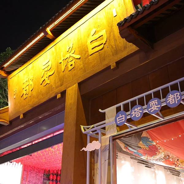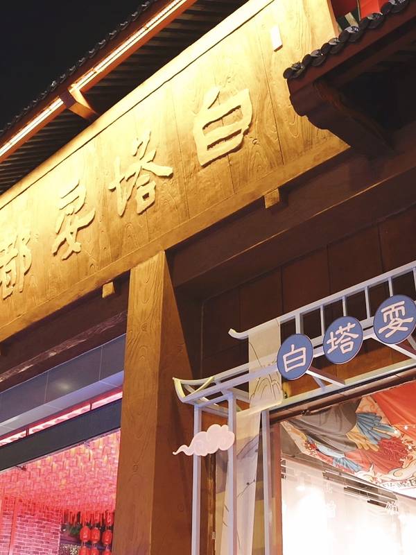 白塔耍都白塔耍都是国潮爱好者的打卡之地。各种各样的美食,形成一条非常有特色的美食街。一整条街的氛围上有整排的灯笼,格外的有过年的气息。