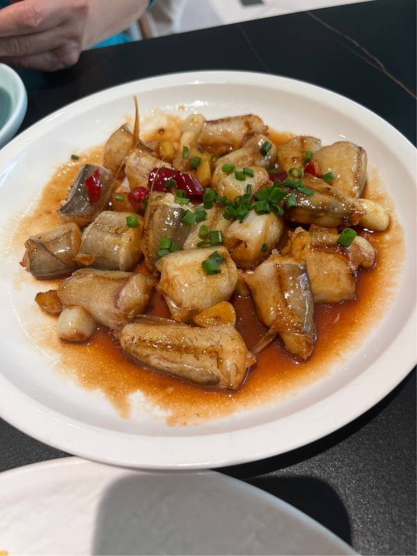 早几年在公司楼下有一家,生意特别火爆,那时候食八档的座位还很复古的,今天逛南湖天地,突然又看到他们家,凭着不错的印象,驱动着我再去试试这家店。 装修风格已经和之前完全不同了,明亮的店堂,桌与桌之间做了一些隔断,增加了一些私密性,但是鱼池在用餐区,还是能闻到整个空气中弥漫着腥味,很影响食欲。 餐品的味道还不错,温岭炒面依旧是老味道,可以吃到卷心菜虾干鱼干等各种食材,啫啫煲是我的最爱,鸡肉香气扑鼻,但是出菜实在太慢了。 雪茄榴莲酥不如说是炸鲜奶,没有吃出榴莲的味道干煎带鱼很新鲜,火候也正好。 冰镇古老肉选了去冰,结果上来是烫的,味道还不错肥肠煲我们家猪先生很喜欢,特意为他点的。 总体性价比还可以,在南湖边吃饭,心情非常愉悦!
