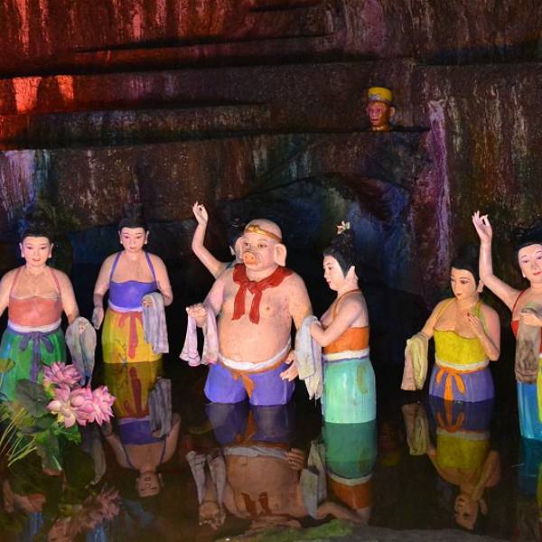金骆驼 超赞建议每个景点都这样.景区的每处厕所都特别精致,很喜欢。说是大舞台其实不太大。观音洞的自然观音西游洞适合亲子游,三五好友同行都可以,若在昆明市可自驾也可打车,离市区不远只要有一天休闲时间都可以去。景区最给力的是全程有免费WIFI哦!休息的时候可以拿出零食掏出手机刷朋友圈,很享受滴哦!超赞建议每...西游洞适合亲子游,三五好友同行都可以,若在昆明市可自驾也可打车,离市区不远只要有一天休闲时间都可以去。景区最给力的是全程有免费WIFI哦!休息的时候可以拿出零食掏出手机刷朋友圈,很享受滴哦!超赞建议每个景点都这样. 我们是早上九点过到的,上主景区之前有个开国迎宾戏,演出时间不定,可能根据客人来到的迟早定的吧。