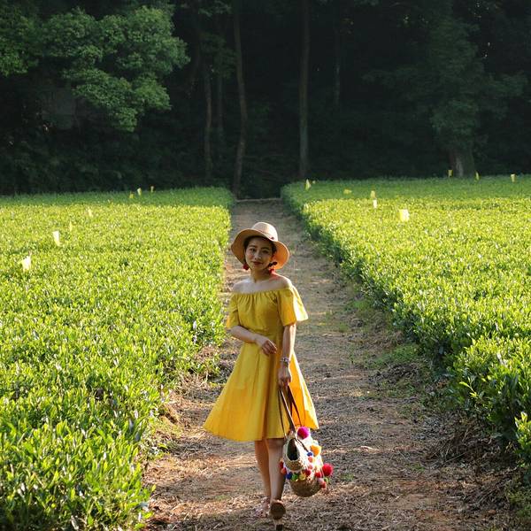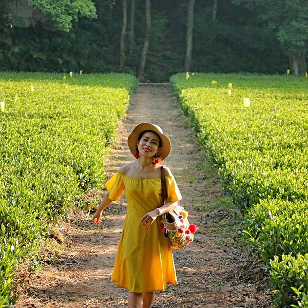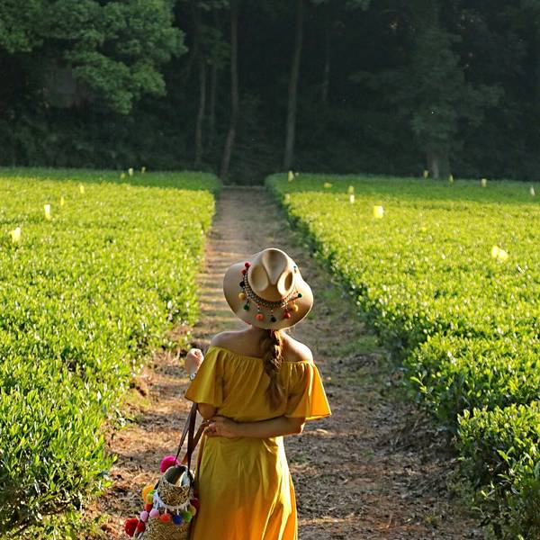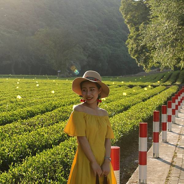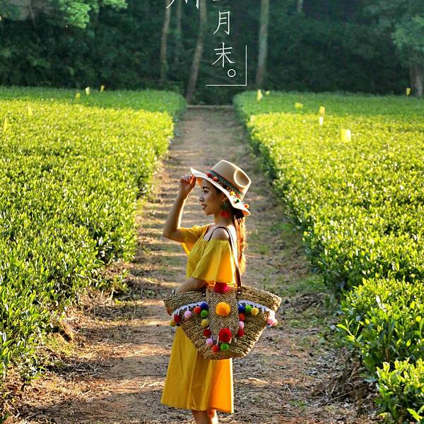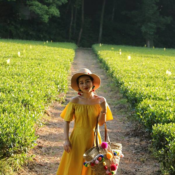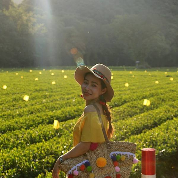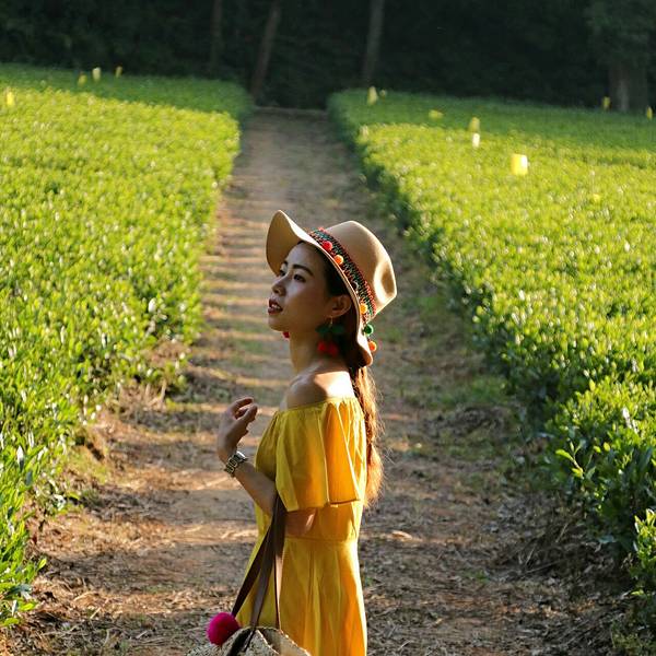 太阳不再毒辣,和大地万物温柔地告别这一天。光晕洋洋洒洒地落了我一...此时正好,夕阳斜落,光线变得细腻而自然,软软的金色光辉从天边倾洒下来,衬着茶园远处树林的层层薄雾,感觉自己要变成天使👼下凡了…😳