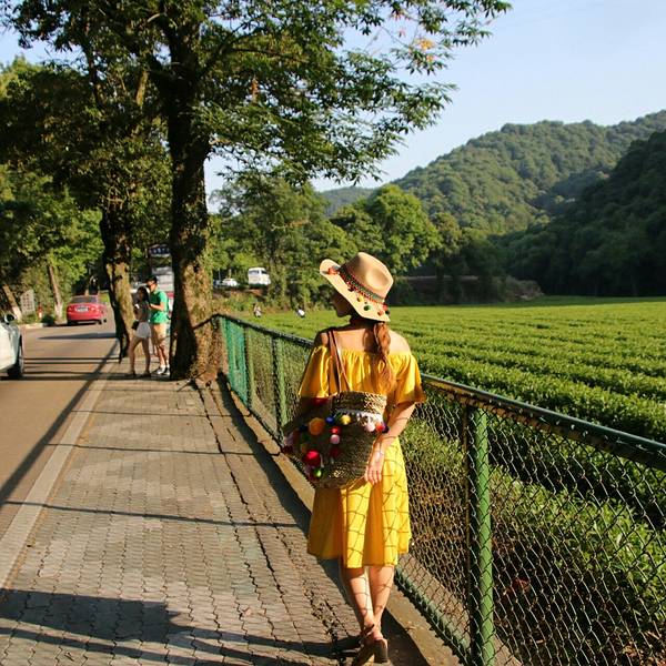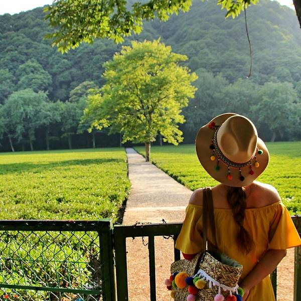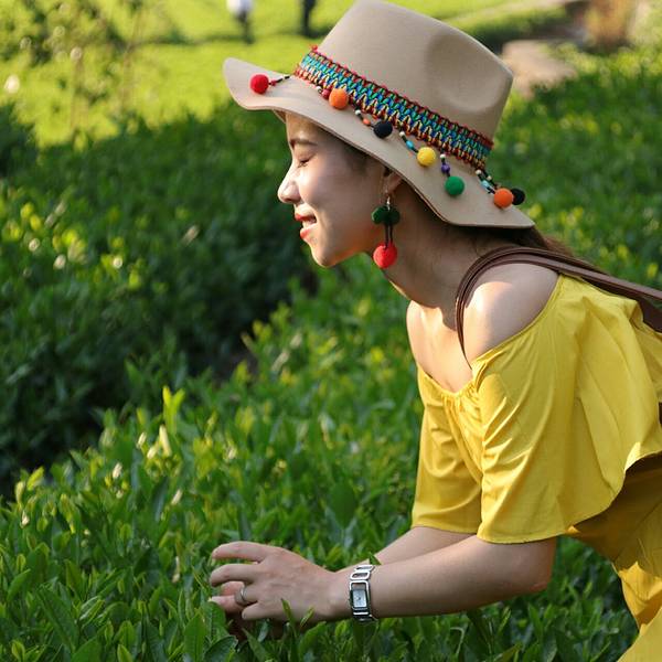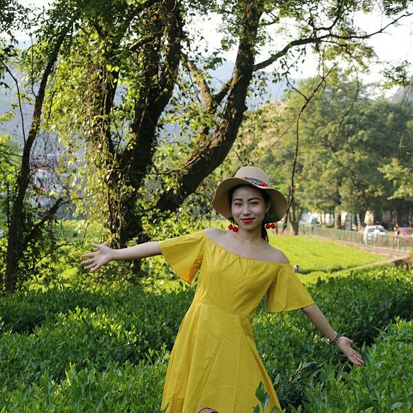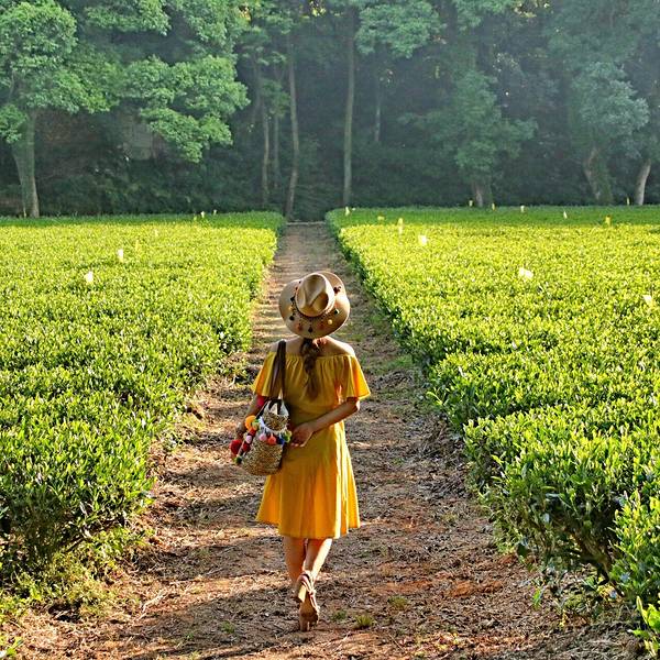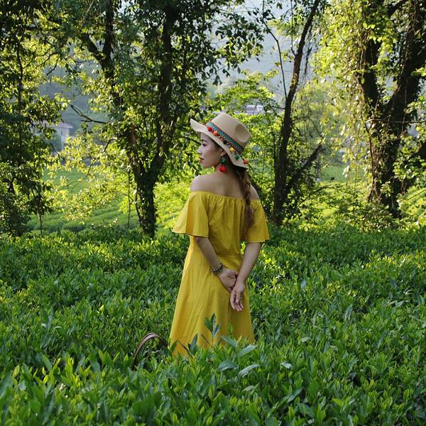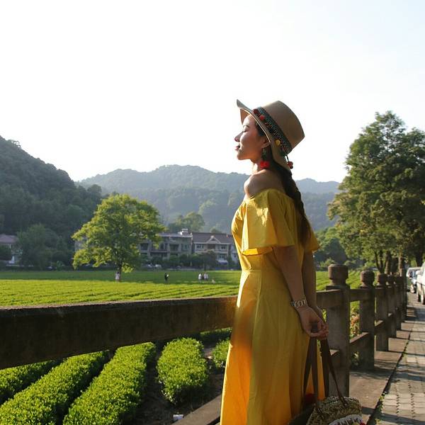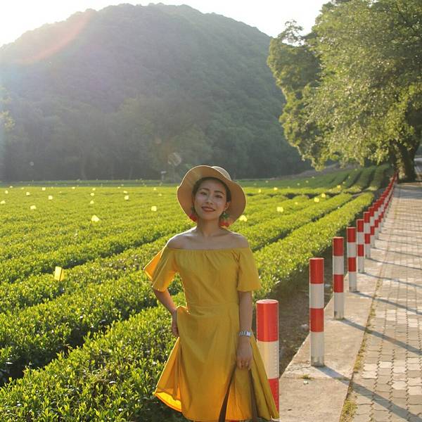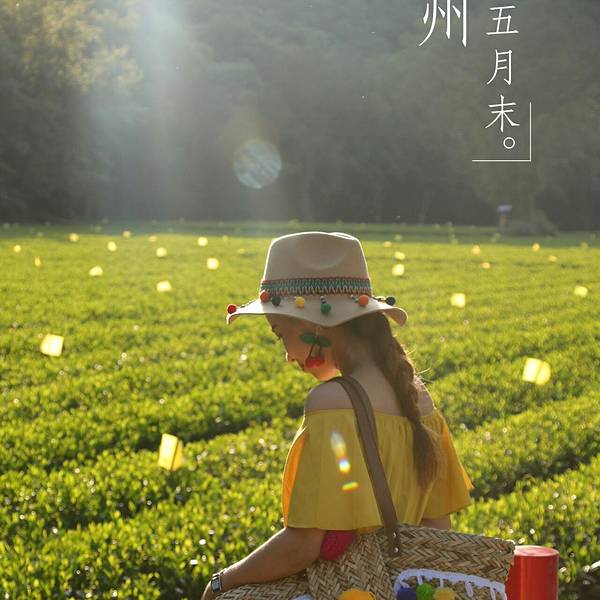 太阳不再毒辣,和大地万物温柔地告别这一天。光晕洋洋洒洒地落了我一...此时正好,夕阳斜落,光线变得细腻而自然,软软的金色光辉从天边倾洒下来,衬着茶园远处树林的层层薄雾,感觉自己要变成天使👼下凡了…😳