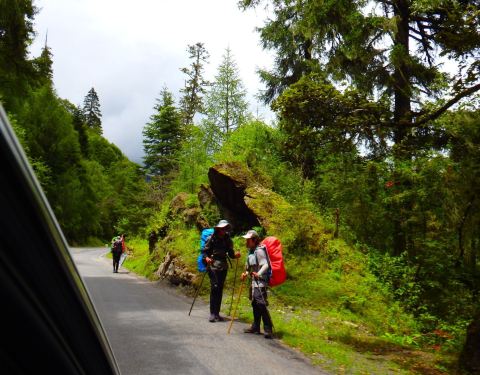 出拉萨到林芝山体植被增多, 特别是到波密, 树木葱葱郁郁仿若江南, 见此景我们对家的思念郁浓318国道拉萨到林芝为高速公路, 林芝到波密为山路, 318川藏线路上神人挺多, 自驾车,摩托车,自行车,徒步, 最狠是推着三轮车带着狗徒步的。 318路为双向单车道, 双向车子交汇都不是很富裕, 加上复杂的路况...318国道拉萨到林芝为高速公路, 林芝到波密为山路, 318川藏线路上神人挺多, 自驾车,摩托车,自行车,徒步, 最狠是推着三轮车带着狗徒步的。 318路为双向单车道, 双向车子交汇都不是很富裕, 加上复杂的路况, 安全隐患多多。 走过219国道的烂路, 318国道对我们来说堪比高速公路[捂脸], 顺畅许多,离家越近心情也开始愉悦, 318通麦天险已不复存在, 现在什么车都能进藏, 只要带上你的勇气。 出拉萨到林芝山体植被增多, 特别是到波密, 树木葱葱郁郁仿若江南, 见此景我们对家的思念郁浓。 展开