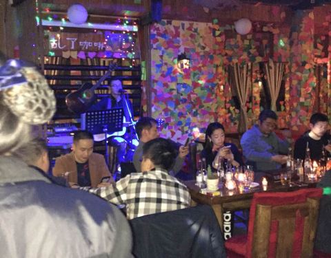 前几天的酒吧都感觉有点吵,还有歌手也不是自己喜欢的范,问了一些朋友,感觉推荐的都不太如意,随意闲逛,来到了乱了咖啡吧,准确的说,这里是一个餐吧,让我驻足和停留的,其实就是那绵柔的民谣音,毫不犹豫,和小伙伴就钻进了这家餐吧。