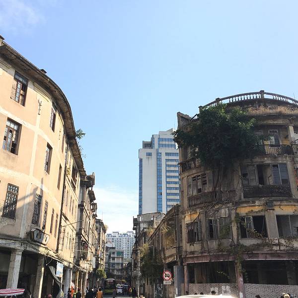 每个城市都有这样的一些老建筑群,见证城市兴衰,多年后,它们要不成了文化旅游景点,要不成了烂尾工程,小公园给我感觉是后者。它的旅游开发也确实进退两难,开发商与居民因拆迁费僵持不下。我们去那时,虽然骑楼建筑挺有特色,仍感觉建筑像危楼既破旧又显得脏乱差。