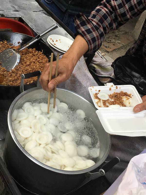 走着走着我们被巷子尽头的香喷喷的粽子吸引过去,是一家老牌粽子店,肉馅饱满,配料丰富,大概12块钱一个。