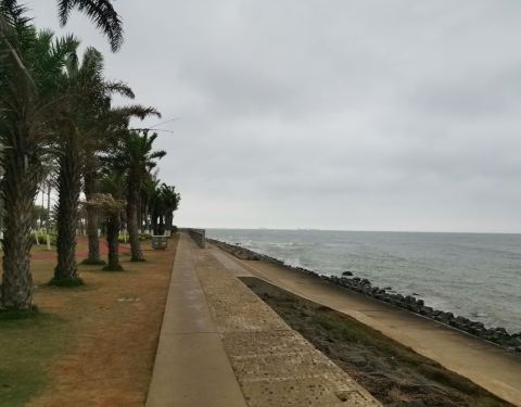 好不容易天晴了温度回暖,其实好想赤脚踩踩水的,但是晚上要直接赶飞机,弄脏了也没地方清理,只能作罢。就在护栏上看看海吹吹风吧。如果想去 “孤独的树” 或是沙滩,可以导航 “白沙门公园-露营地”