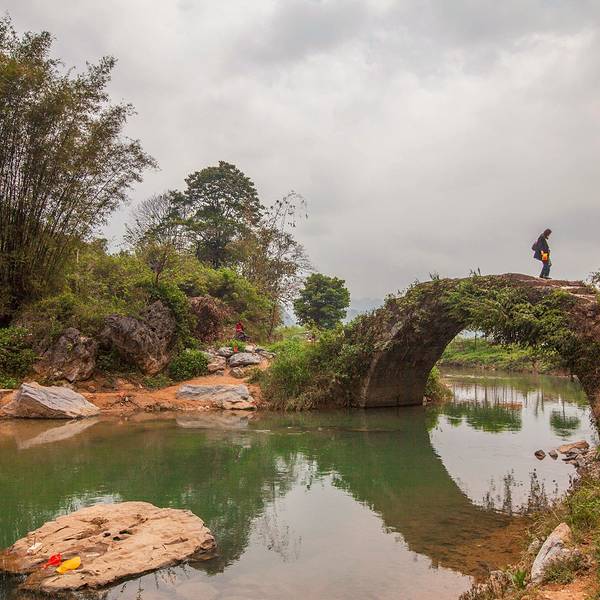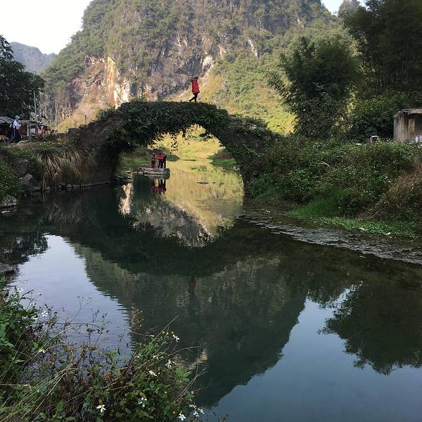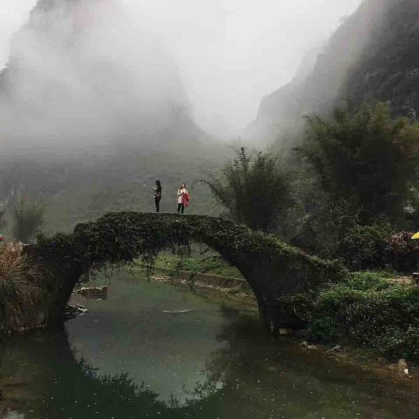大路之外就是庄家田橘林,放眼望去满眼绿色,偶尔点缀其间的零星孤峰拔地而起,像是峰林走廊的山水画,隐约而恰到好处。镇上几乎找不到像样的宾馆或者饭店,村里都是大块土建的房子,也没找到厕所,所以大家心理要有所准备。还有一个印象特别深刻的景点便是“小赵州桥”,当时导游讲了很久有关它悠久的历史。在这样前不着村后不着店的乡野,全程靠徒步,需要用双脚去丈量风景与风景间的距离,在这里没有小摊贩的叫卖声,没有拥挤的人潮,也没有遍地的垃圾,这里没有受到一点点破坏也没有受外界的干扰,也只有这样最原始的风景这才是值得我们去的地方。