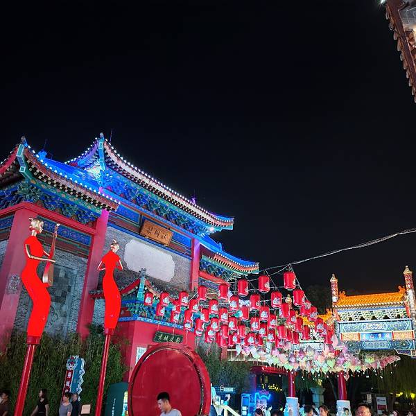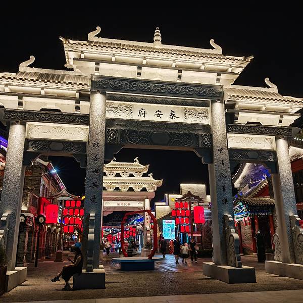 从太平湖看完喷泉表演之后出来,就看到了这个泰安秀城,在泰安市岱岳区桃花源路天平湖西门北500米,泰山南麓、泰山西湖西侧。 以展示齐鲁文化为核心,聚合旅游演艺、民俗美食、科技娱乐、国潮文创等多种业态的旅游目的地景区。