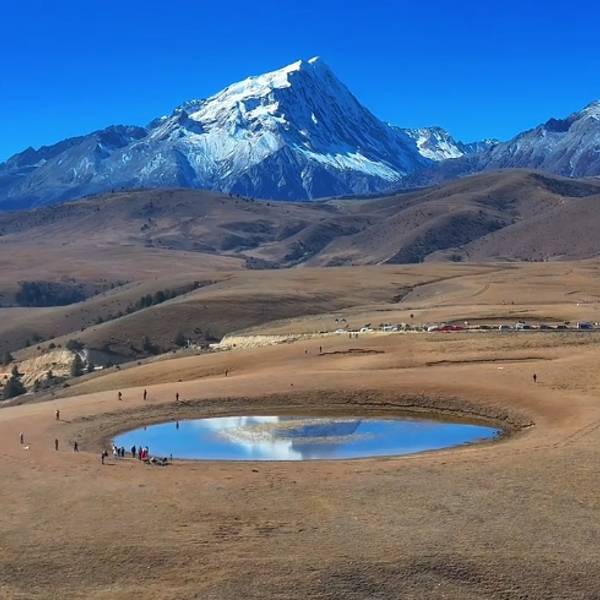 格聂景区以其壮丽的自然风光而闻名。景区内格聂雪山高耸入云,海拔6204米,是四川第三高峰,山顶终年积雪不化,在阳光照耀下,闪耀着圣洁的光芒。格聂之眼更是景区的一大奇观,它是一个天然的圆形水塘,塘水清澈见底,周边被嫩绿的草地环绕,从高空俯瞰,宛如大地的眼睛,与周围的雪山、森林、草原共同构成了一幅绝美的画卷。
