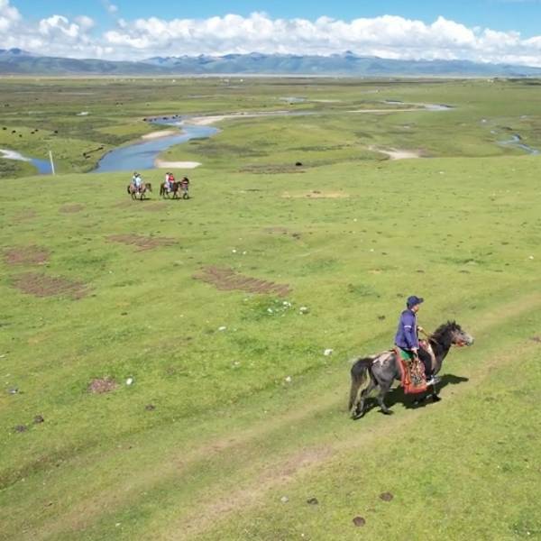 毛垭大草原位于理塘县城以西约18公里处,是四川省最大的草原之一,面积达5000平方公里。草原地势平坦,水草丰美,一望无际的绿色草原上点缀着五颜六色的野花,仿佛一幅巨大的绿色画卷。草原上还有一条清澈的无量河蜿蜒而过,河水潺潺流淌,与蓝天白云、草原花海构成了一幅如诗如画的美景。