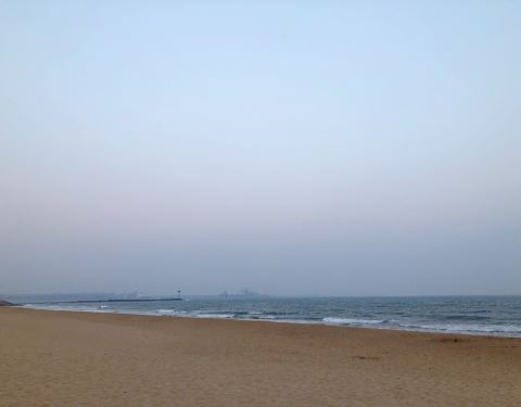 早上收拾东西,今晚就要离开这里了,真的很不舍。把行李存到了火车站,坐7路1个小时就可...东山浴场位于东港区,算是我在秦皇岛见得最干净最蓝最清澈的一个海滩了吧。也算是在走之前最后停留的一个海滩,真的很美。