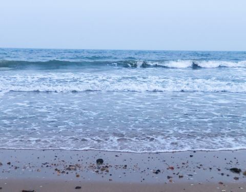 接近日暮,海水的色调也跟着暗了两度。